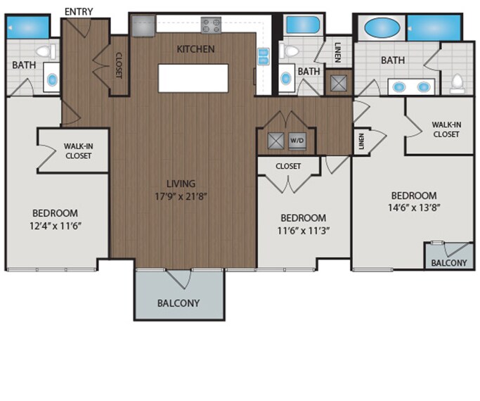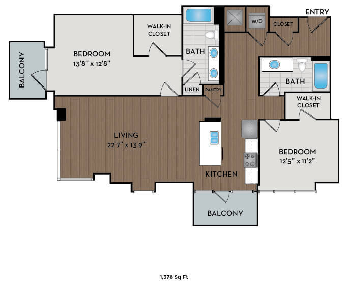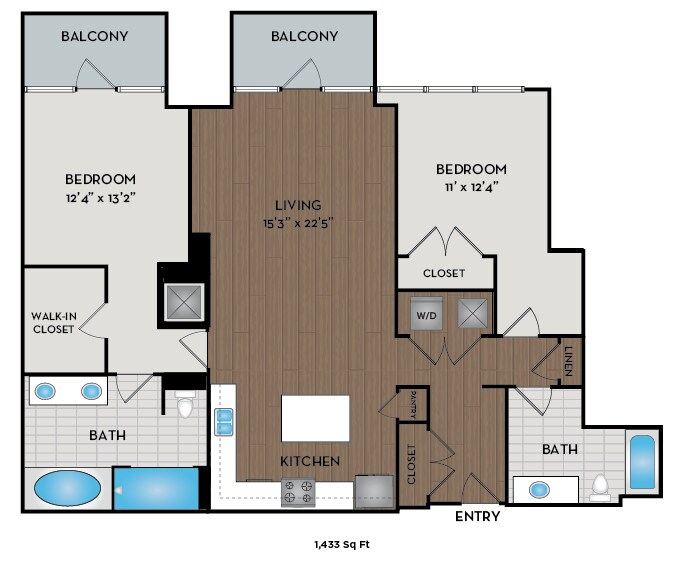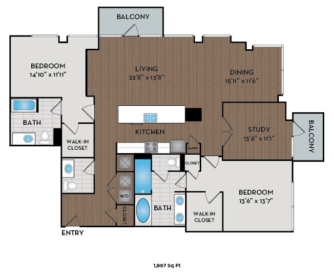 11F0 - Plano 1 Unidad de apartamento: N1613Modelo de apartamento: 11F0$2,2851 Dormitorio, 1 Baño, 707 sq ftDisponible Ahora![]()