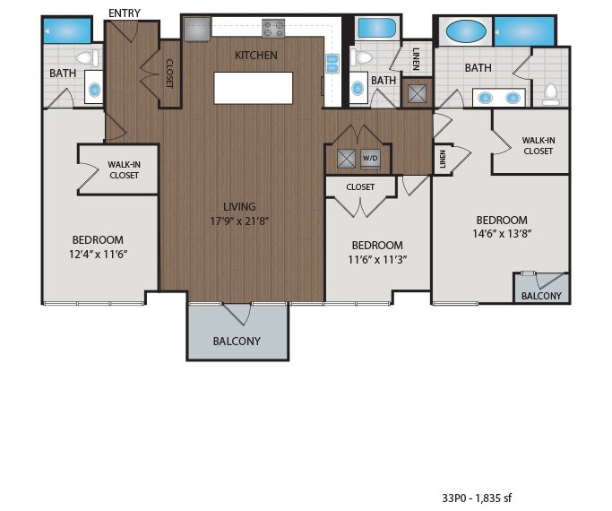 11F0 - Plano 1 Unidad de apartamento: N0913Modelo de apartamento: 11F0$2,1951 Dormitorio, 1 Baño, 707 sq ftDisponible Ahora![]()