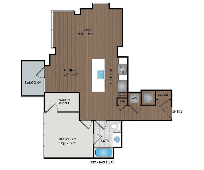 1 Dormitorio, 1 Baño, 949 pies²Disponible AhoraGalería del Modelo