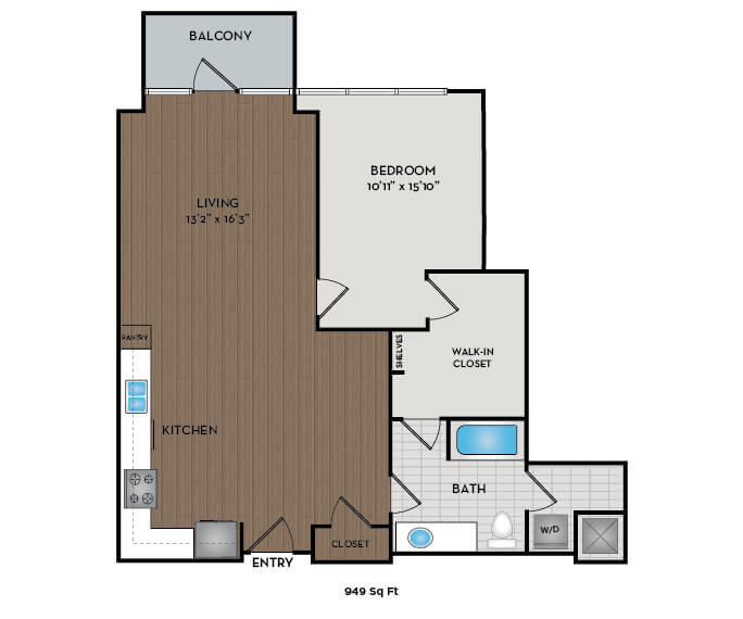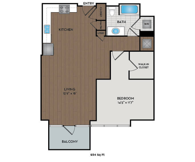 1 Dormitorio, 1 Baño, 934 pies²Disponible AhoraGalería del Modelo