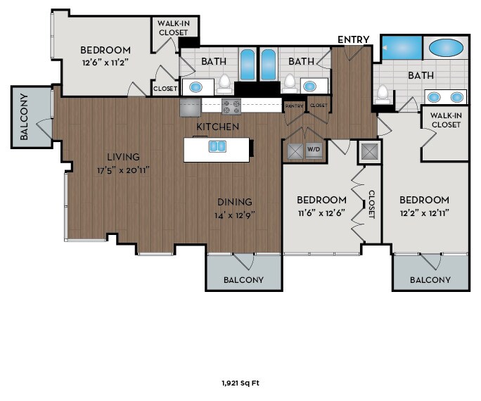 Modelo de apartamento: 11F4Desde $2,1901 Dormitorio, 1 Baño, 934 sq ftDisponible Ahora![]()