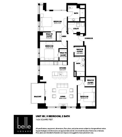 Modelo de apartamento: 2-B - ConventionalLlame para Precios2 Dormitorios, 2 Baños, 1168 sq ftNo Disponible![]()