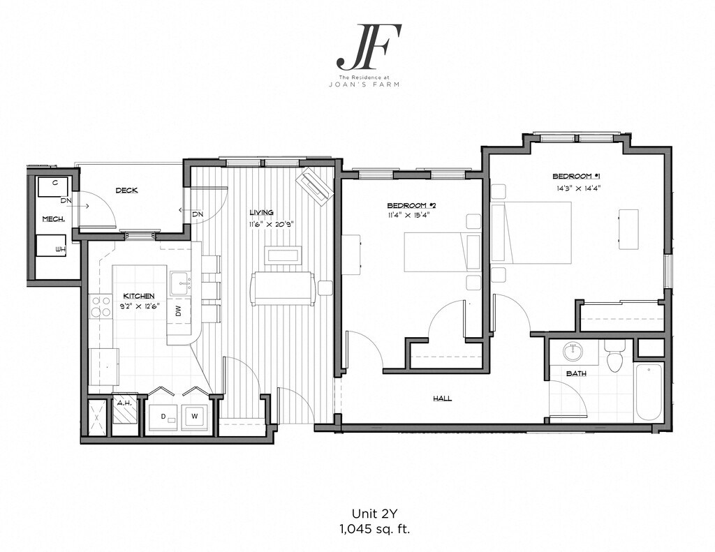 One Bedroom Deluxe - Plano 1 Unidad de apartamento: 3416Modelo de apartamento: One Bedroom Deluxe$2,7051 Dormitorio, 1 Baño, 1045 sq ftDisponible January 1, 20262 Dormitorios