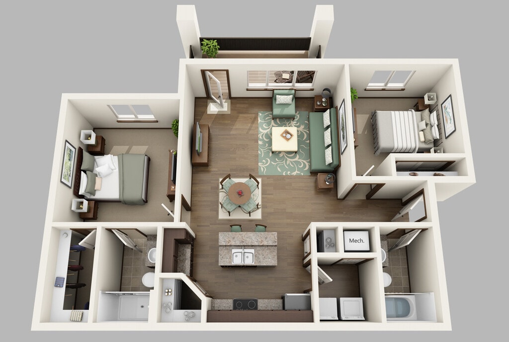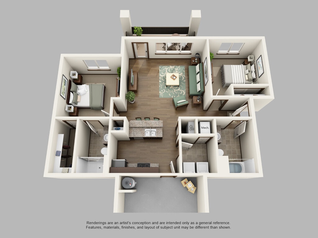 2 Dormitorios, 2 Baños, 1022 pies²Galería del Modelo