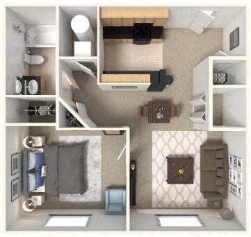 1 Dormitorio, 1 Baño, 752 pies²Disponible AhoraGalería del Modelo