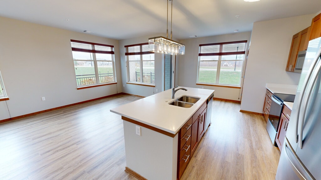 Explore the heart of Howard at The Residences at Howard Commons. Our premium apartments feature stainless steel appliances, central air, quartz countertops, solid wood cabinets, and more. Embrace the vibrant lifestyle within steps of coffee shops, parks, and the library. Explore the lively community gathering place at HOWARD COMMONS, boasting an open-air pavilion, multi-season skating rink, and the new Howard Biergarten.