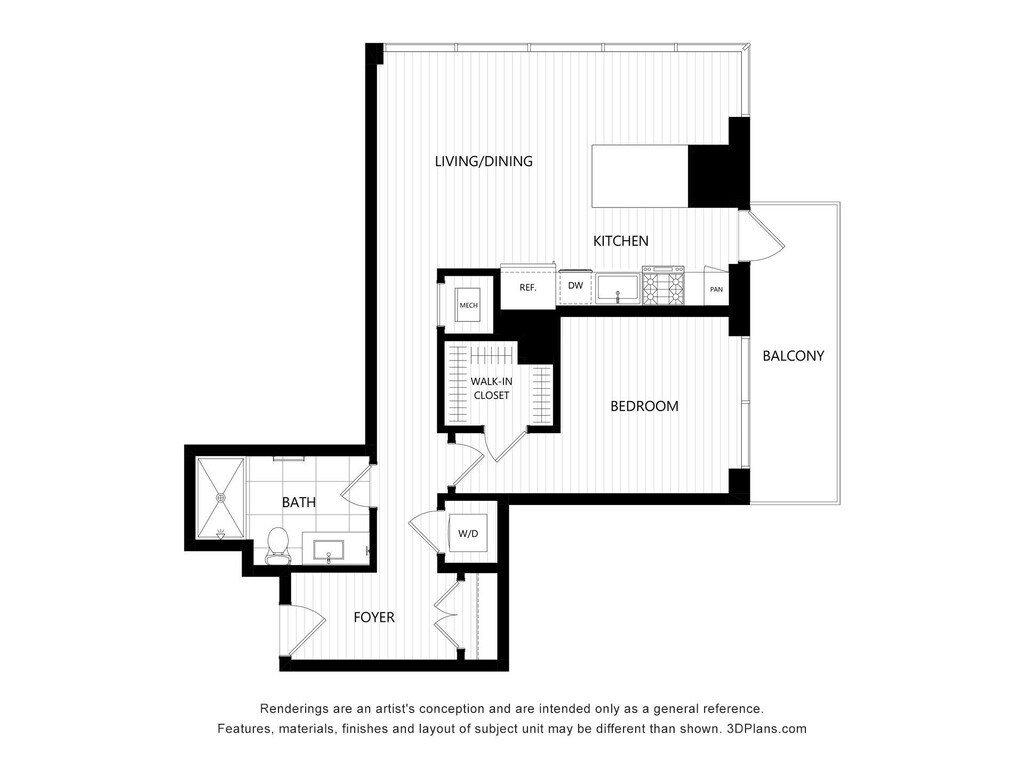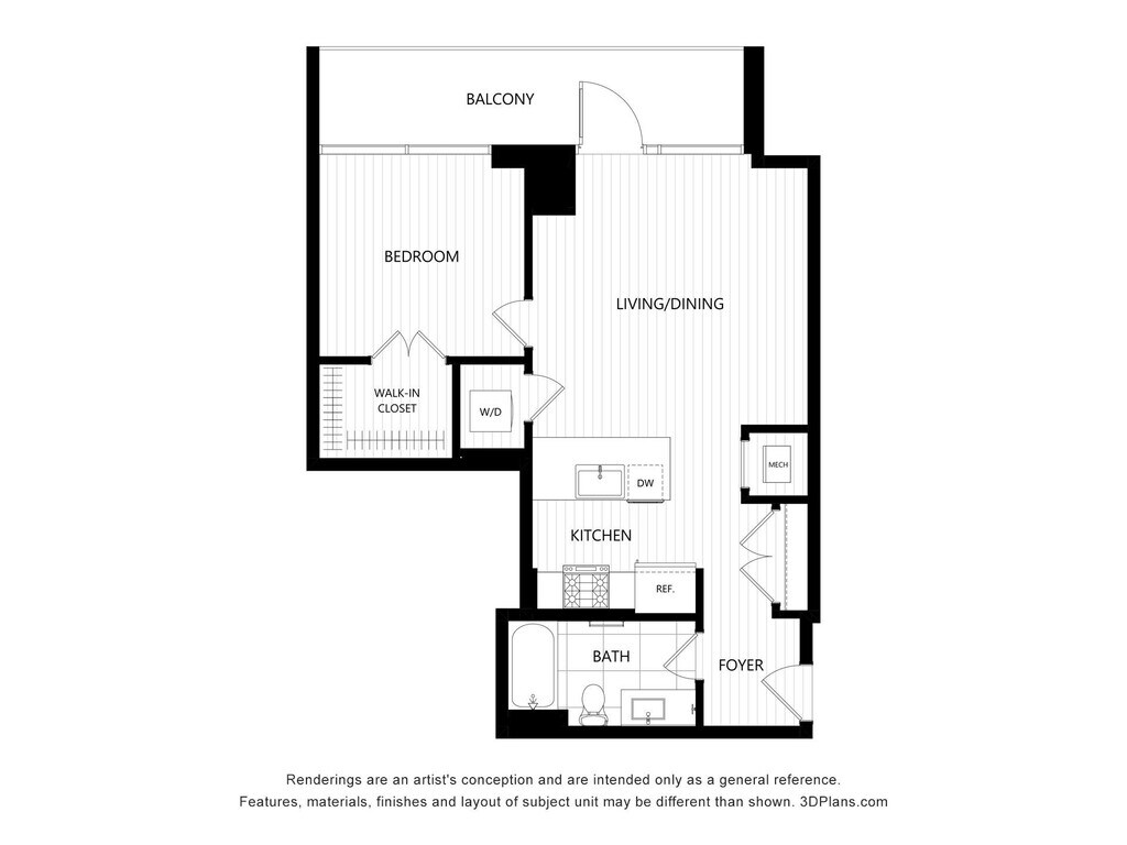 Estudio, 1 Baño, 507 pies²Disponible AhoraGalería del Modelo