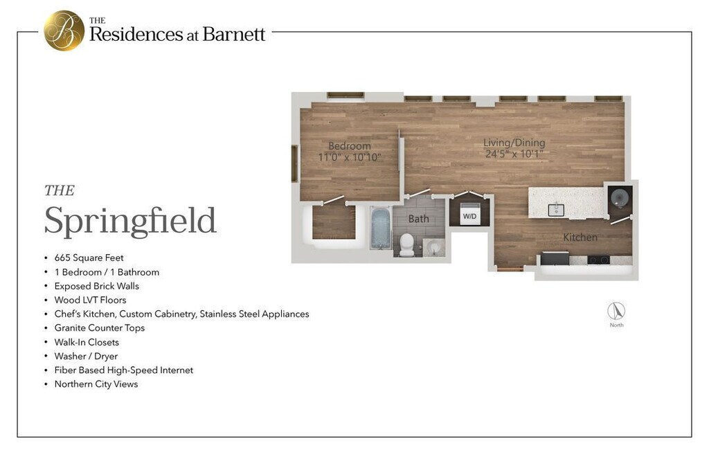 The Springfield - Plano 1 Unidad de apartamento: 1402Modelo de apartamento: The Springfield$1,3951 Dormitorio, 1 Baño, 665 sq ftDisponible AhoraThe Hart