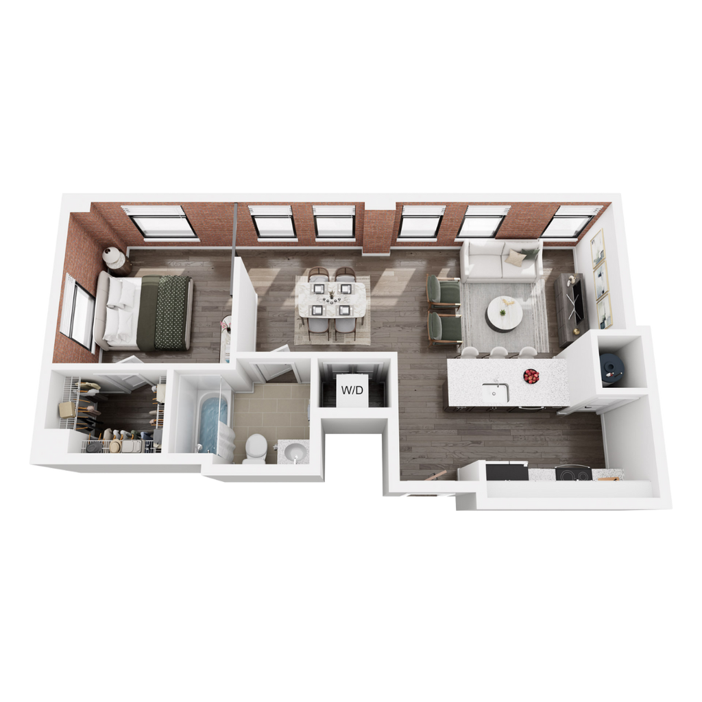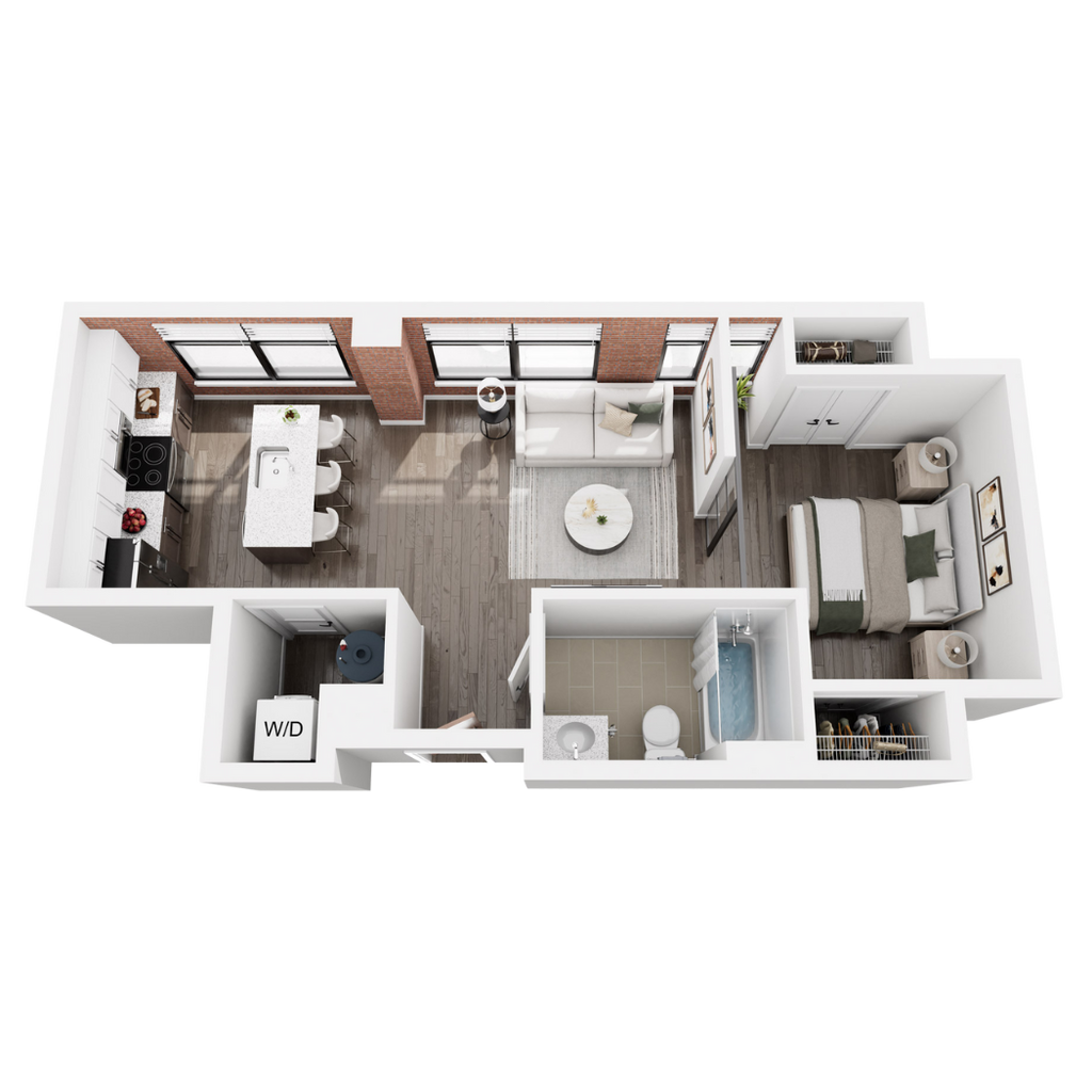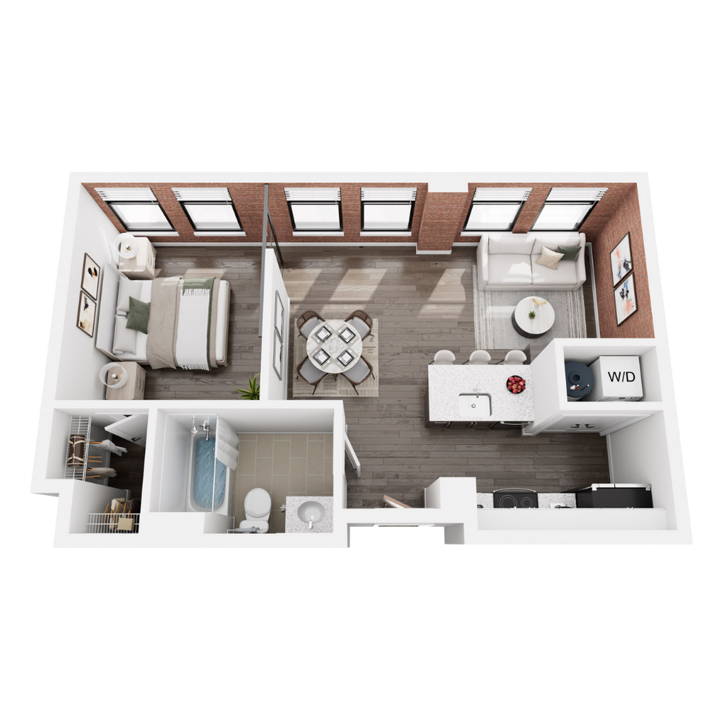 1 Dormitorio, 1 Baño, 578 pies²Disponible AhoraGalería del Modelo