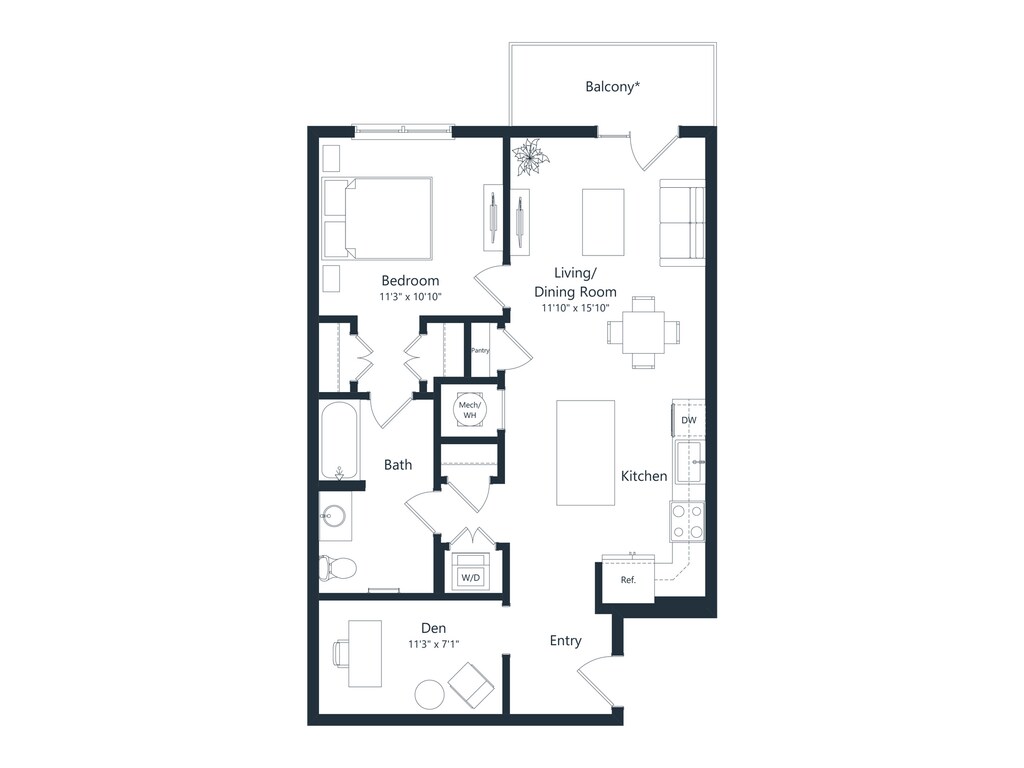 Estudio, 1 Baño, 561-583 pies²Precio Mensual TotalDisponible Mar 1Galería del Modelo