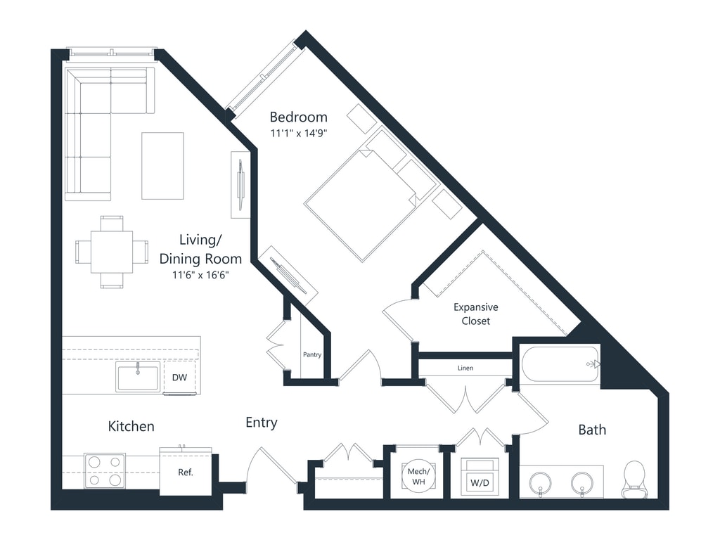 Estudio, 1 Baño, 568-608 pies²Precio Mensual TotalDisponible May 13El más grandeEsta opción tiene las unidades más grandes para este modeloGalería del Modelo