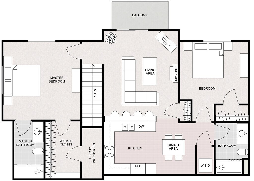 Modelo de apartamento: Two Bedroom Two Bathroom - Upper$1,7092 Dormitorios, 2 Baños, 1144 sq ftNo DisponibleTwo Bedroom Two Bathroom - Upper - Plano 1