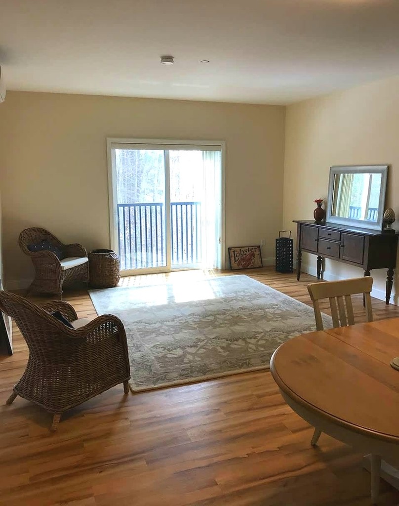 Cocina completamente equipada con encimeras de granito. Las unidades del primer piso tienen un patio con pérgola, balcones franceses en las unidades superiores. Elegantes baños con encimeras de granito y suelos de baldosas climatizadas. Conexiones para lavadora y secadora en apartamentos, también tiene lavandería operada con monedas en el primer piso. Salón comunitario con Chimenea, zona de cocina y patio. Gimnasio Apartamentos con acceso para personas con discapacidades disponibles Al menos un miembro de la familia debe tener 55 años o más. Localizado convenientemente apenas 5 millas de I-95. Cerca de tiendas y de restaurantes, con todo situado en una zona enselvada reservada. A menos de una hora de Boston y Portland. Comunidad senior activa que incluye noches de juego, reuniones sociales, juegos de hoyos de maíz y celebraciones navideñas. Echa un vistazo a las direcciones web a continuación para ver una vista panorámica ... copia y pega la dirección en tu navegador web. 1 Habitación: https://my.matterport.com/show/?m=G4PQDDdZgAC Lujo 2 Habitaciones Unidad: https://my.matterport.com/show/?m=mNiKB1SKPtS