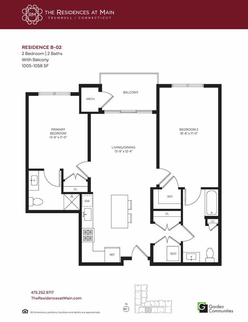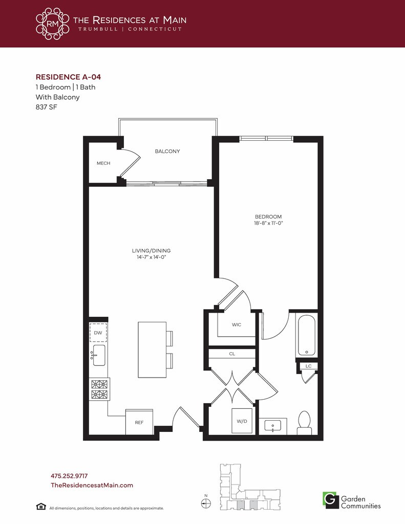 The Residences at Main se encuentra en el Barrio Trumbull Upper Stratford Shelton y el código postal 06611 de Trumbull, CT. Esta comunidad está gestionada profesionalmente por Garden Communities