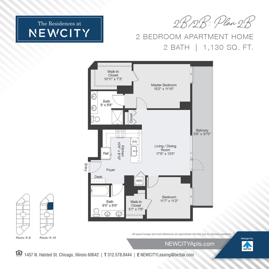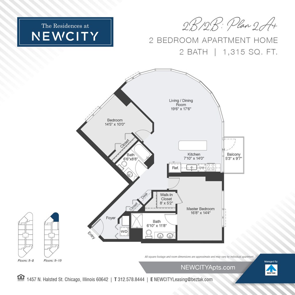 The Residences at NewCity ofrece apartamentos de Estudio a 2 Dormitorios desde $2,366 con 590–1,315 pies cuadrados. Aquí está el precio actual y la disponibilidad: