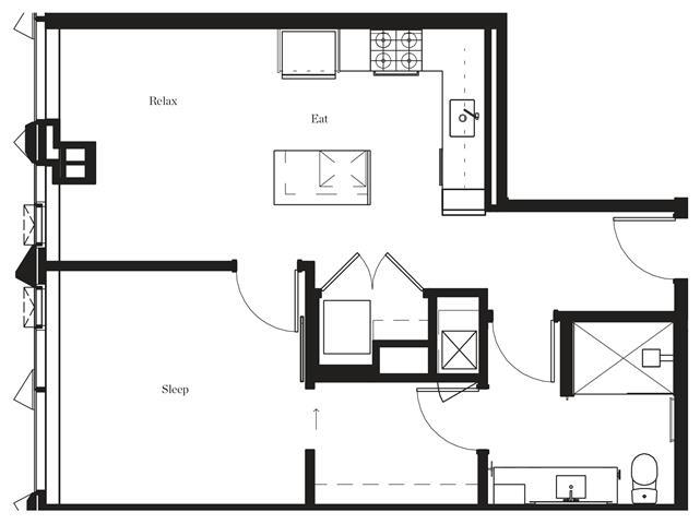 4105-4605 - Plano 1 Unidad de apartamento: 4405Modelo de apartamento: 4105-46051 Dormitorio, 1 Baño, 762 sq ftDisponible Ahora4710-5210