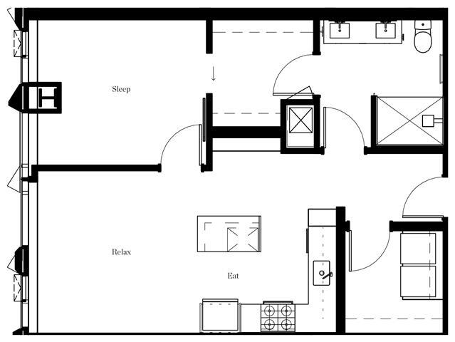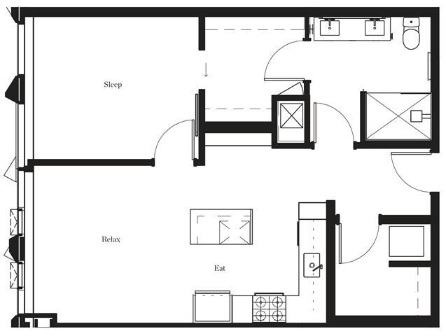 1 Dormitorio, 1 Baño, 764 pies²Disponible AhoraGalería del Modelo