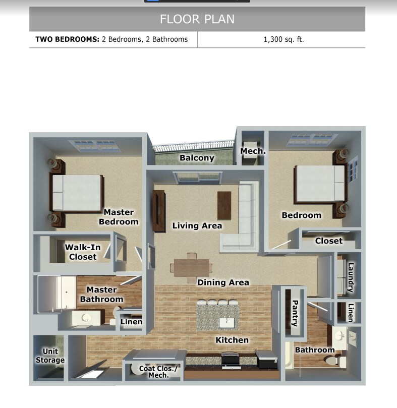 Modelo de apartamento: Two BedroomDesde $1,8702 Dormitorios, 2 Baños, 1382 sq ftDisponible Ahora![]()