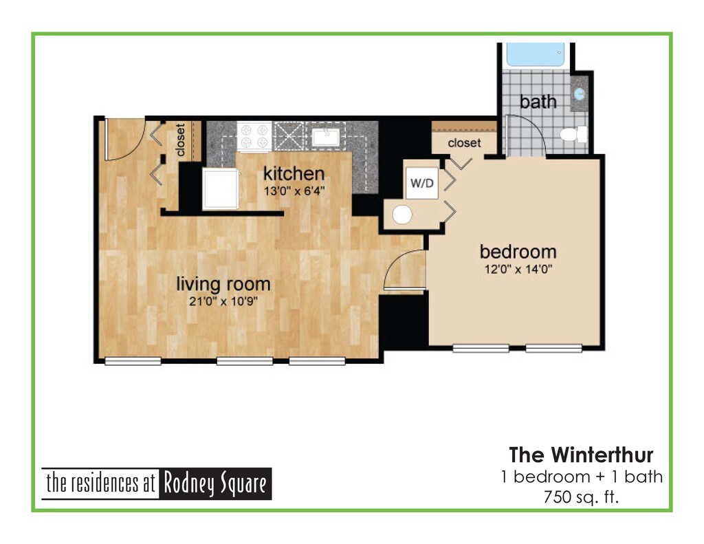 Modelo de apartamento: Winterthur One Bedroom OnDesde $1,6151 Dormitorio, 1 Baño, 750 sq ftNo Disponible![]()
