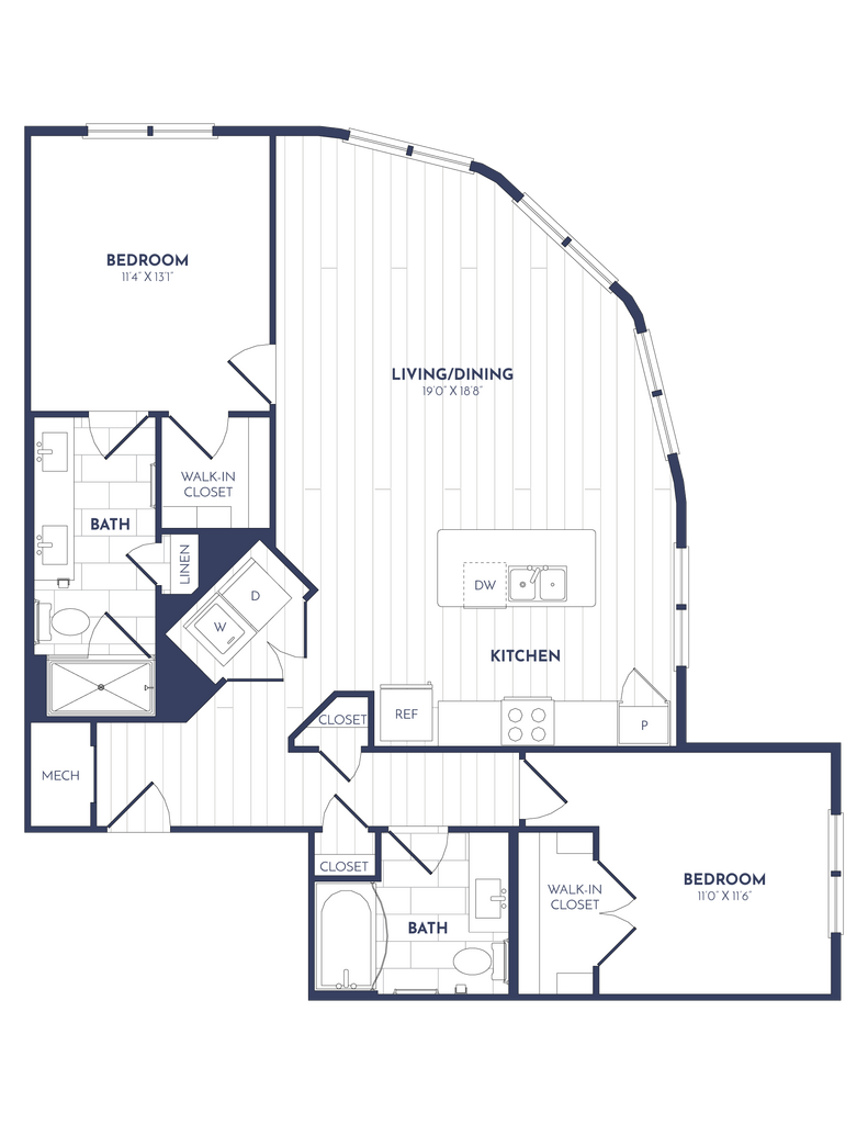 1 Dormitorio, 2 Baños, 1175 pies²Disponible AhoraGalería del Modelo
