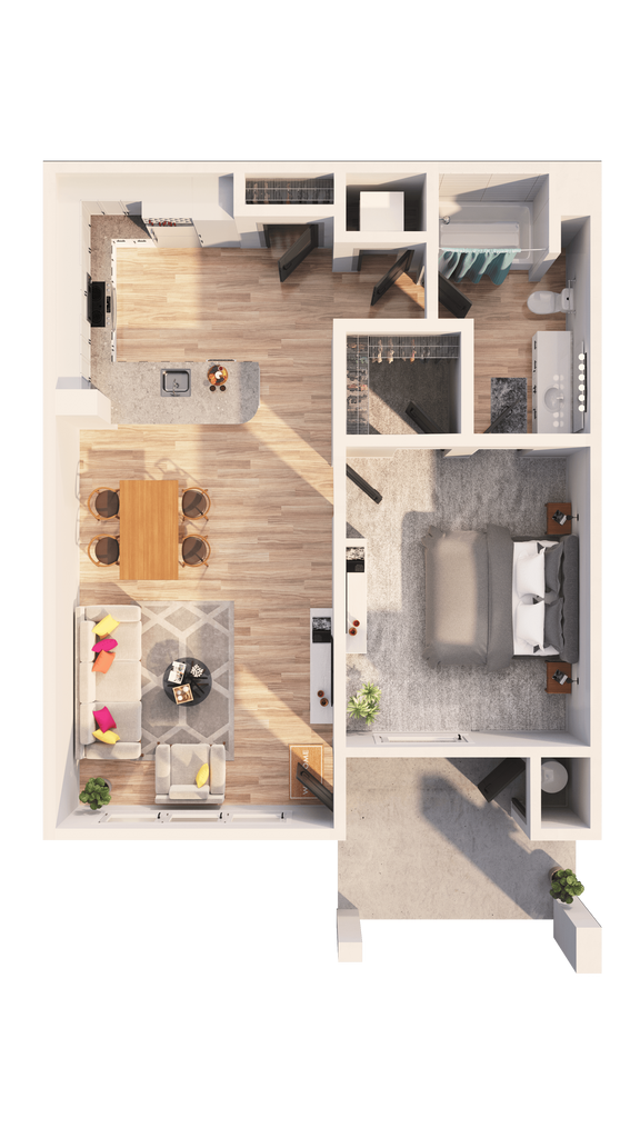 1 Dormitorio, 1 Baño, 708 pies²Disponible AhoraGalería del Modelo