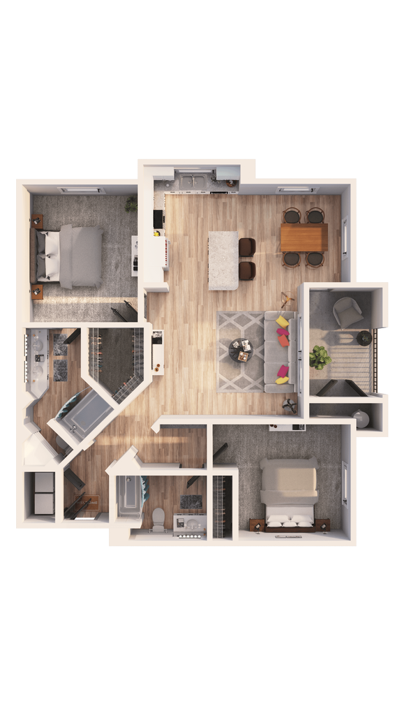 Modelo de apartamento: B1Desde $1,4052 Dormitorios, 2 Baños, 1124 sq ftDisponible Ahora![]()