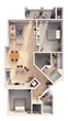 Modelo de apartamento: A2Desde $1,3011 Dormitorio, 1 Baño, 708 sq ftDisponible Ahora![]()