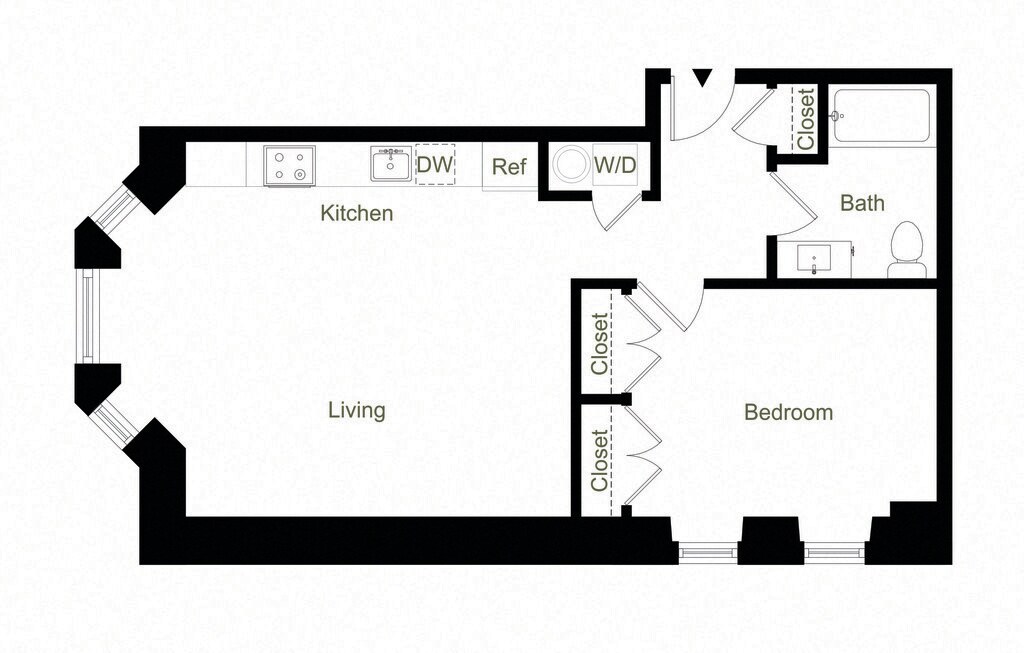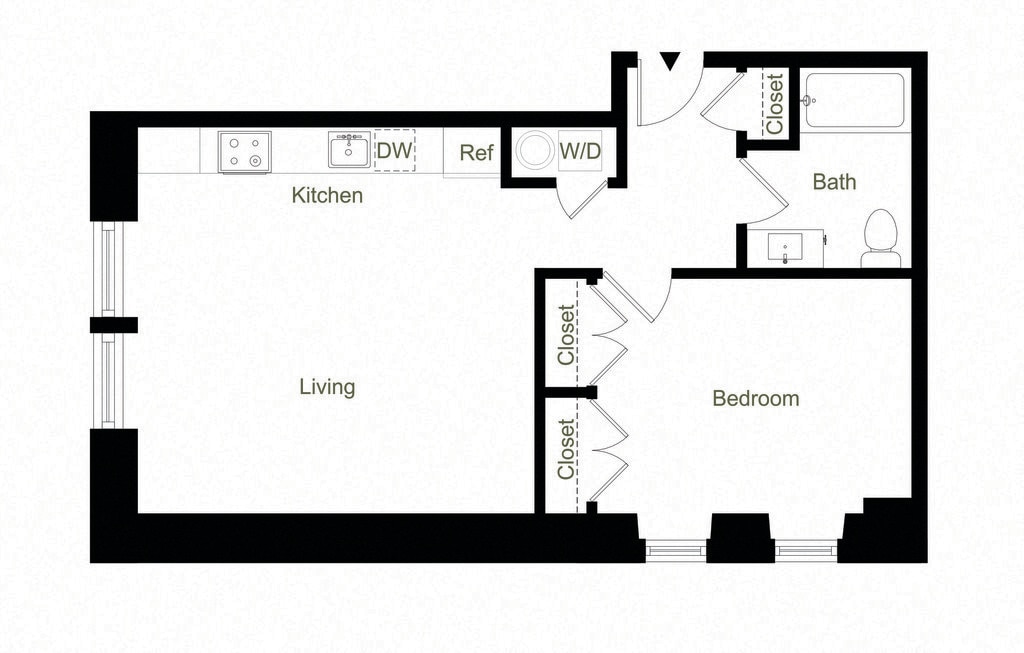 1 Dormitorio, 1 Baño, 579 pies²Disponible AhoraGalería del Modelo