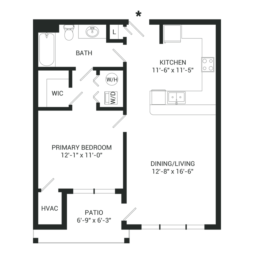 1 Dormitorio, 1 Baño, 952 pies²El más grandeEsta opción tiene las unidades más grandes para este modeloGalería del Modelo