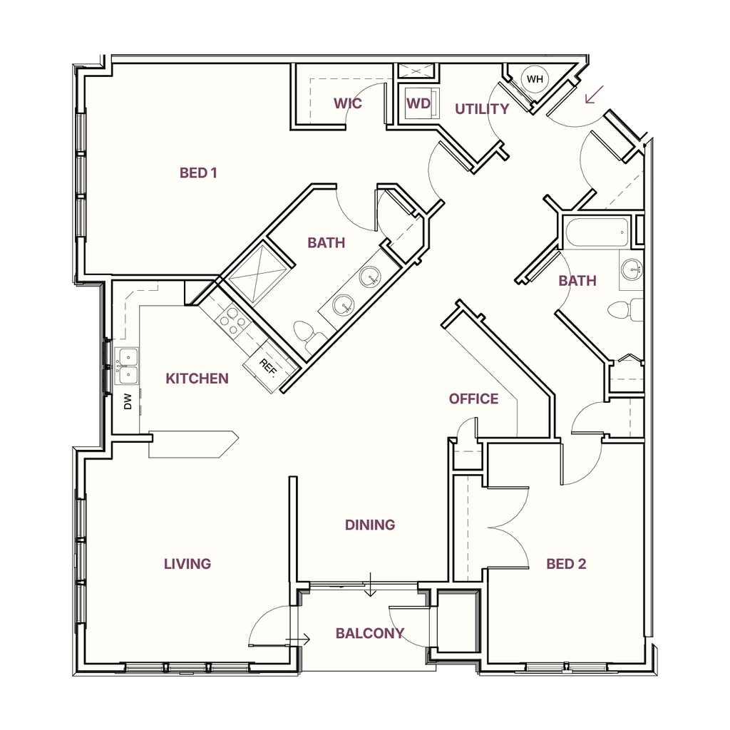 2 Dormitorios, 2 Baños, 1762 pies²Disponible May 1El más grandeEsta opción tiene las unidades más grandes para este modeloGalería del Modelo