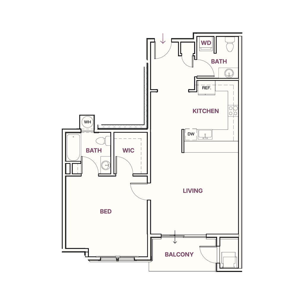 1 Dormitorio, 1.5 Baños, 1119 pies²Disponible May 1Galería del Modelo