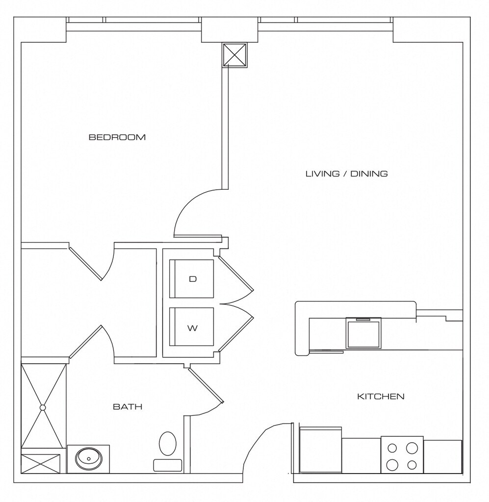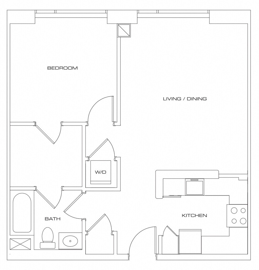 One Bedroom - 50 WB - Plano 1 Los planos son representaciones artísticas. Todas las dimensiones son aproximadas. El producto y las especificaciones reales pueden variar en tamaño o detalle. No todas las características están disponibles en cada vivienda en alquiler. Por favor, consulta con un representante para obtener más detalles.