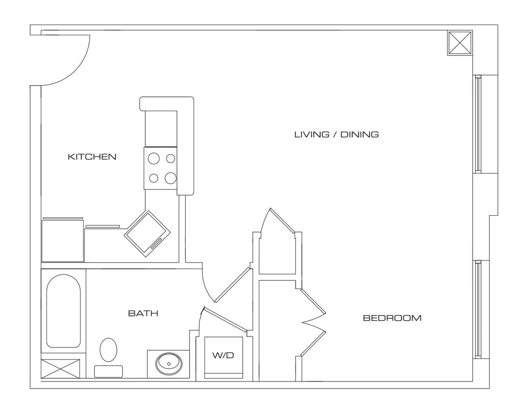 One Bedroom - 26 WB - Plano 1 Unidad de apartamento: 2-02Modelo de apartamento: One Bedroom - 26 WB$3,3171 Dormitorio, 1 Baño, 755 sq ftDisponible Ahora![]()