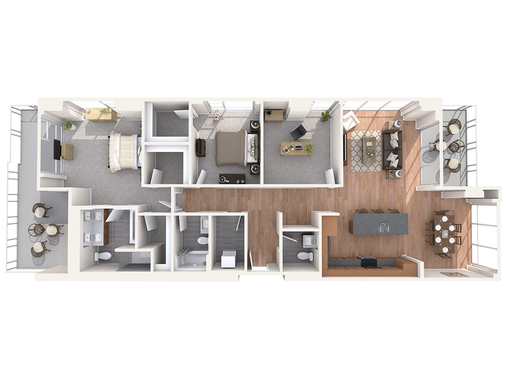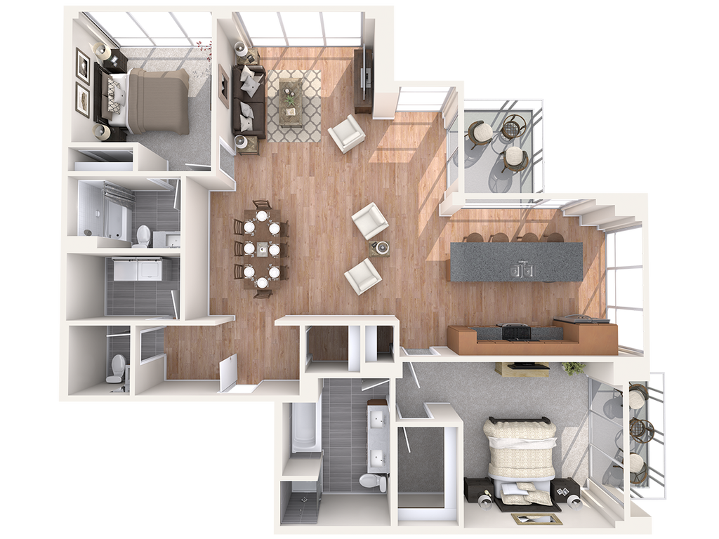 Modelo de apartamento: CDesde $2,0901 Dormitorio, 1 Baño, 1053 sq ftNo Disponible![]()