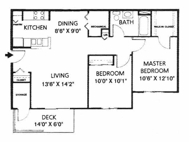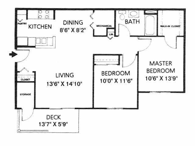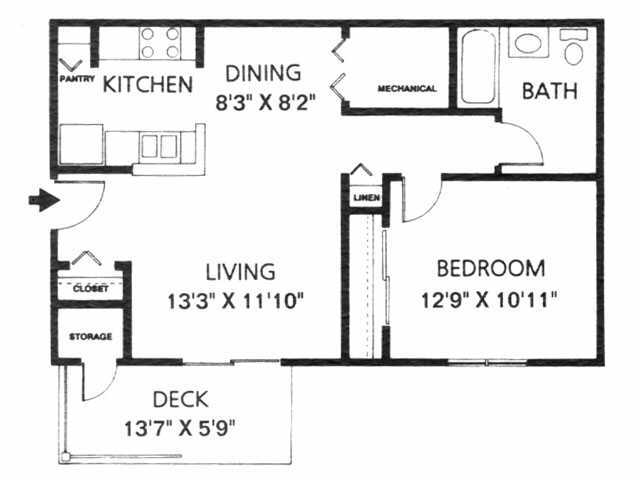 Modelo de apartamento: 1 bd$9441 Dormitorio, 1 Baño, 709 sq ftDisponible AhoraPlanosFotos![]()