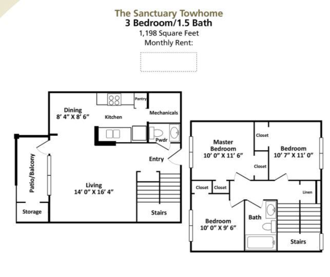 Modelo de apartamento: 3-bd TH$1,3143 Dormitorios, 2 Baños, 1198 sq ftDisponible AhoraPlanosFotos![]()