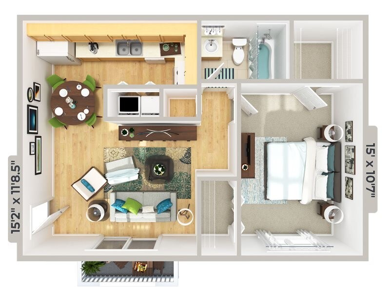 1 Dormitorio, 1 Baño, 650 pies²Disponible AhoraGalería del Modelo
