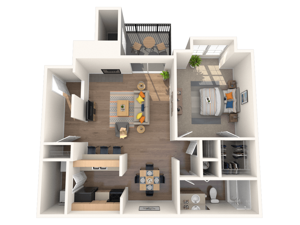 1 Dormitorio, 1 Baño, 670 pies²Disponible AhoraGalería del Modelo