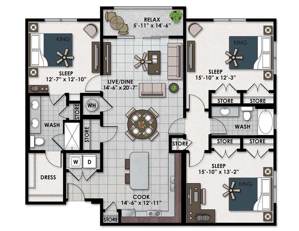Modelo de apartamento: A3Desde $2,0451 Dormitorio, 1 Baño, 767 sq ftDisponible Ahora![]()