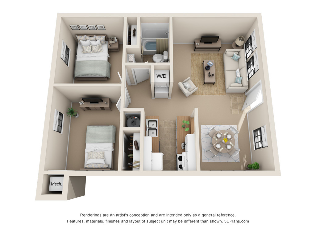 2 Dormitorios, 1 Baño, 720 pies²Disponible AhoraGalería del Modelo