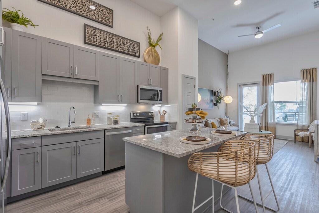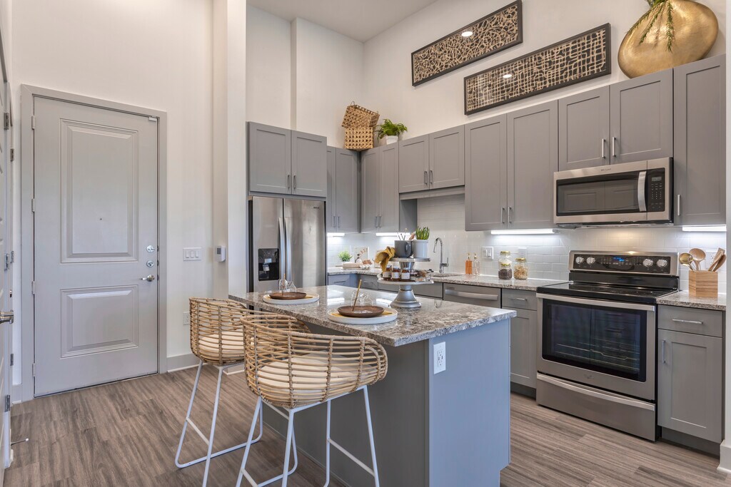 Mejora lo ordinario con un nuevo apartamento tipo estudio, de una, dos o tres habitaciones en The ReVe. Estos apartamentos que admiten mascotas cerca de Richardson harán de cada día algo especial, con comodidades de centro turístico, elegantes acabados de diseñador y características de apartamentos que rivalizan con cualquier hotel de cinco estrellas. Todos con acceso inigualable a los mejores destinos de Garland y más allá. Ven a casa a lo extraordinario: vive y ama The ReVe.