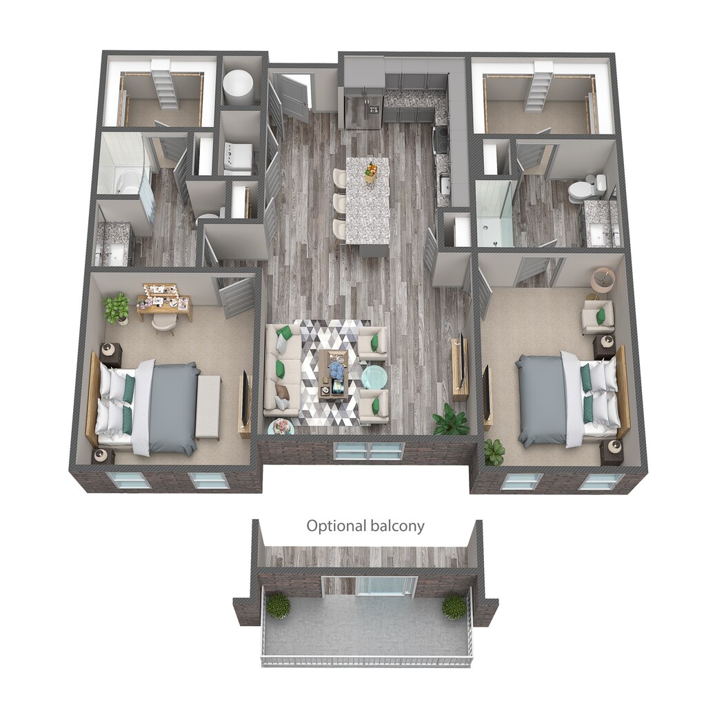 Modelo de apartamento: A4Desde $1,5821 Dormitorio, 1 Baño, 800 sq ftDisponible November 22, 2025![]()