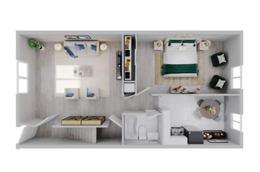 1 Dormitorio, 1 Baño, 670-770 pies²Disponible AhoraGalería del Modelo