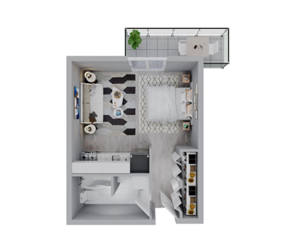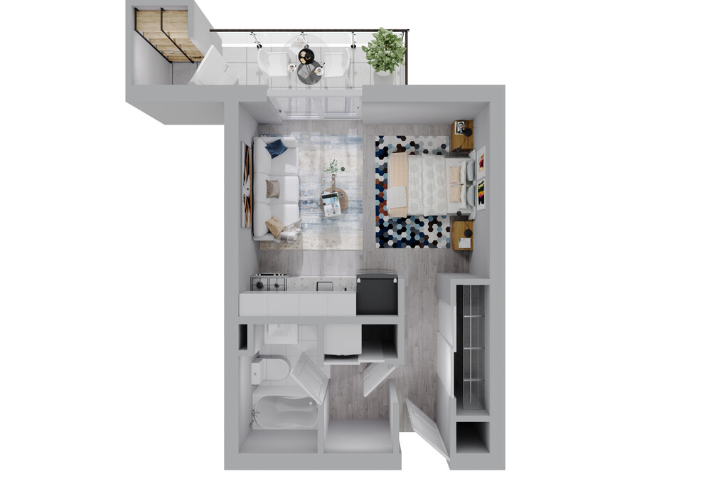 Estudio, 1 Baño, 331-405 pies²Galería del Modelo