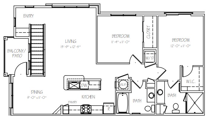 1 Dormitorio, 1 Baño, 807 pies²Disponible AhoraGalería del Modelo