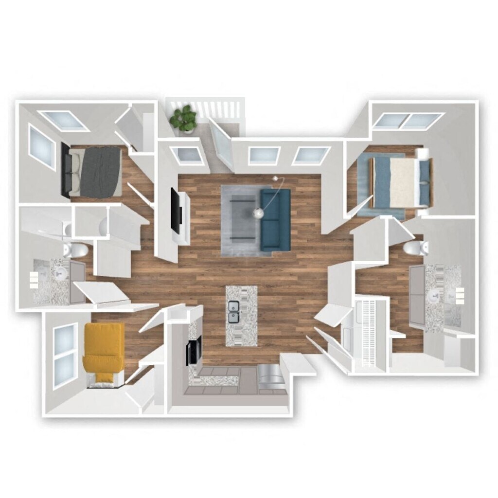 Modelo de apartamento: C1Desde $1,3993 Dormitorios, 2 Baños, 1264 sq ftDisponible Ahora![]()