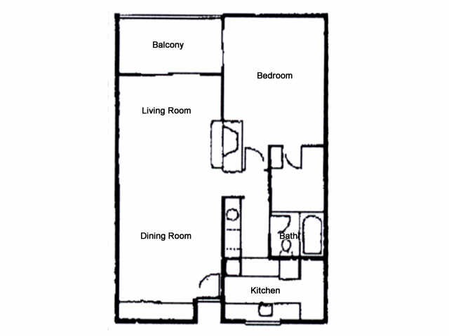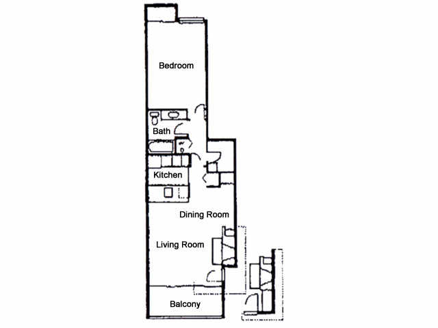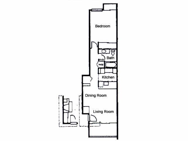 1 Dormitorio, 1 Baño, 600 pies²Disponible AhoraGalería del Modelo