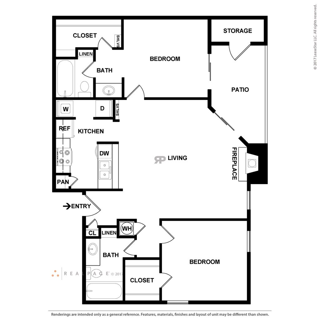 2 Dormitorios, 1 Baño, 887 pies²Galería del Modelo