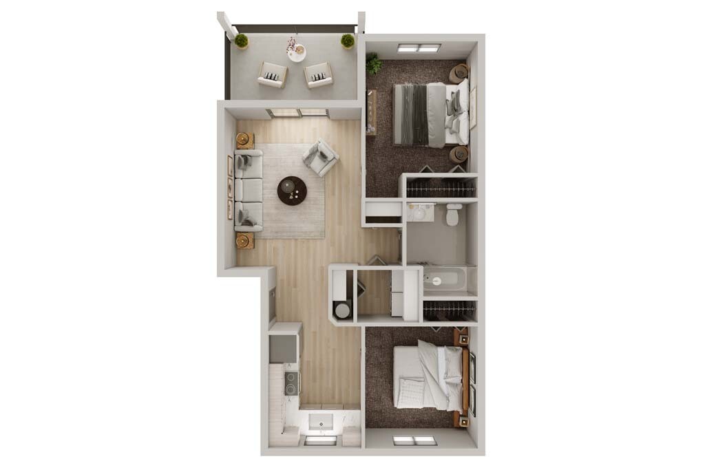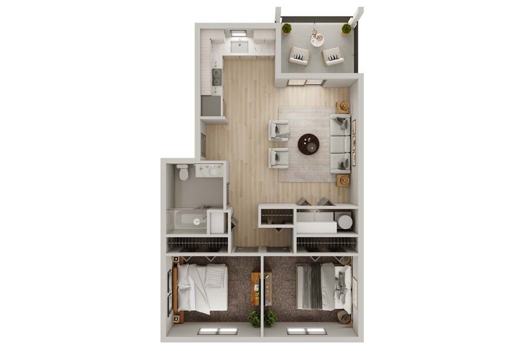 2 Dormitorios, 1 Baño, 787 pies²Disponible AhoraGalería del Modelo