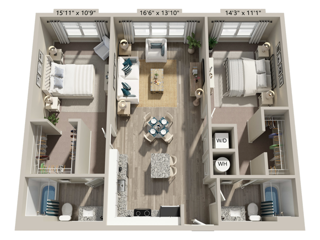 Modelo de apartamento: B1Desde $1,6882 Dormitorios, 2 Baños, 1152 sq ftDisponible AhoraLos planos de la planta son una interpretación artística. Todas las dimensiones son aproximadas. Los tamaños o el detalle del producto real y sus especificaciones pueden variar. No todas las características están disponibles en todos los hogares para rentar. Los precios y la disponibilidad están sujetos a cambios. El alquiler que se muestra es mensual. Se pueden aplicar ciertos cargos, por ejemplo, entrega de paquetes, recolección de basura, agua, servicios, etc. Depositos varian. Consulta a un representante para conocer detalles.